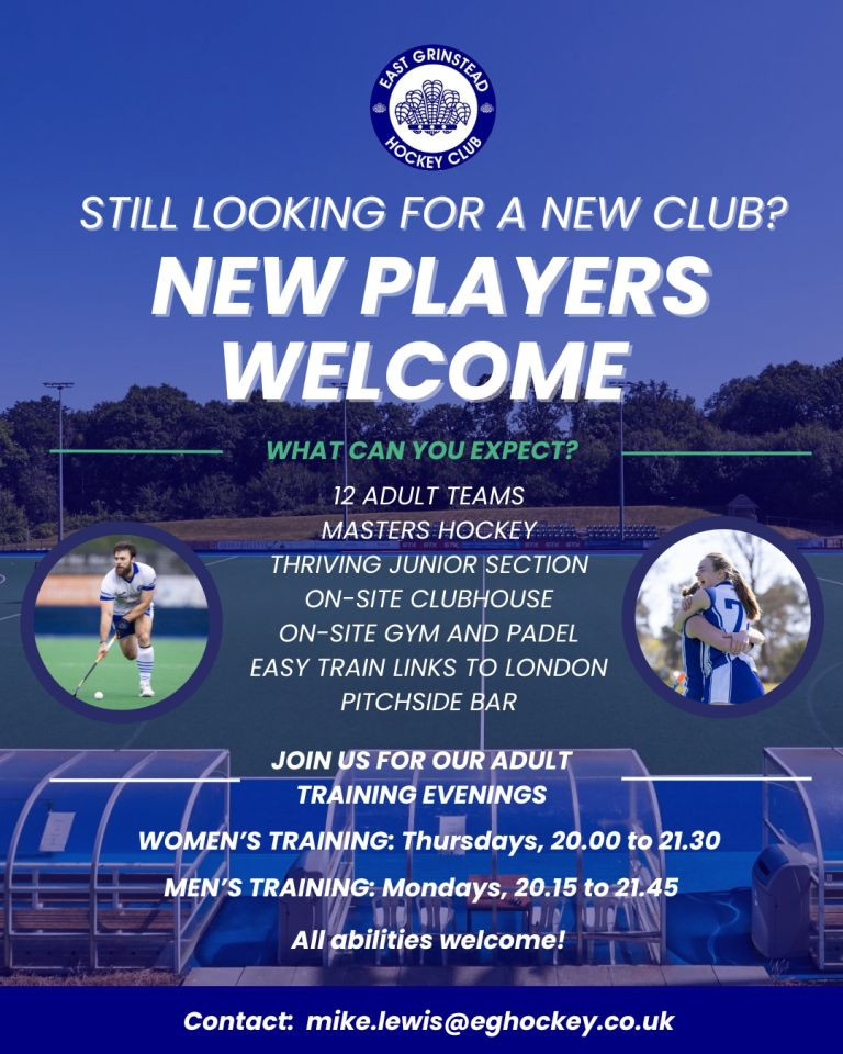 If you would like to come and join East Grinstead Hockey Club, now is the time! We can also offer EGSC gym discounts, a fantastic clubhouse, outdoor bars, Padel courts and even the Bluebell railway in the distance. If you would like more information, then please complete the membership enquiry form https://www.eghockey.co.uk/membership or contact This email address is being protected from spambots. You need JavaScript enabled to view it.