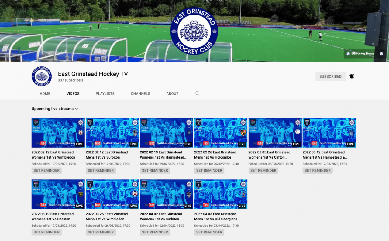 1. Go to YouTube and search for EastGrinsteadHockeyTV or click here: https://www.youtube.com/results?search_query=EastGrinsteadHockeyTv