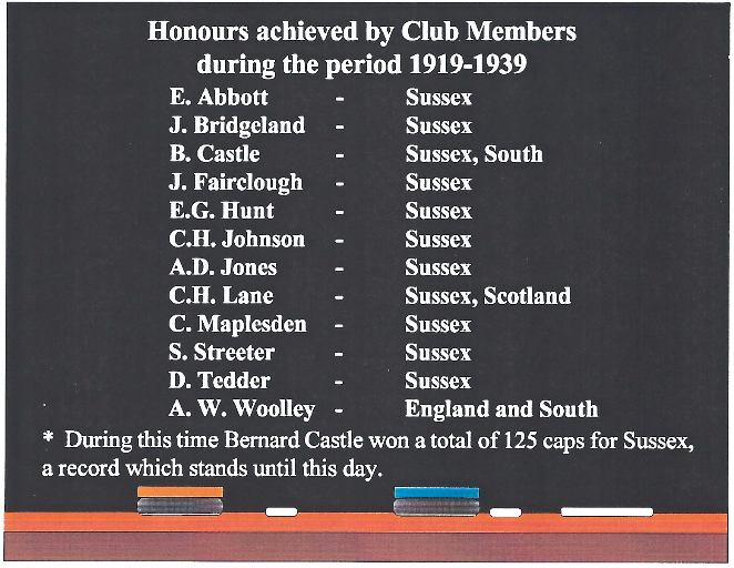 Until the Club procured the use of the West Street Cricket Ground for the 1909-1910 season, the Dorman's Park ground continued to be used for home games. During the period 1903-1910 the Club captains were Spen- cer Hughes and P.A. Robson and the President was Edward Blount. Club officersand committee members were Blake, Genge, Heasman, Hooper, Moore, Smith and White (no ini- tials given!) and other playersinclude Dahl, Dendy, Gardner, Gordon, Lamkin, Maplesden, Matson, Mead, Moreley, Pearless, Rowan, Stenning, Tyler, Vavasour, Walford and Winsel. Spencer Hughes and Hooper were selected for the County in 1905.